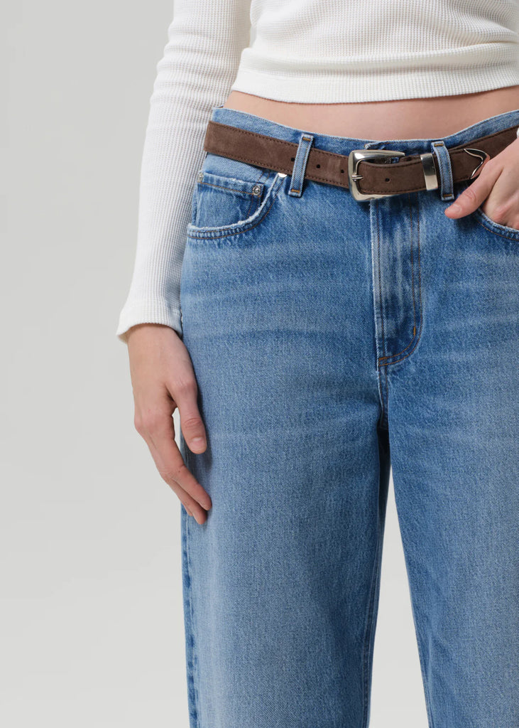 The Miro jean offers a slightly relaxed top block and tapered take on the barrel leg silhouette.