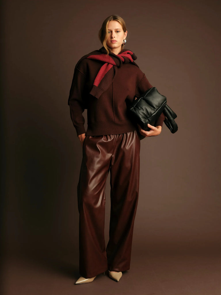 A wide-leg silhouette plays up the contemporary style of these suave faux-leather pants.