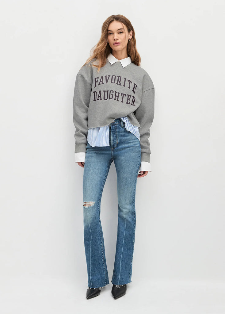 Give it the old college try with our cropped collegiate sweatshirt. With the drop shoulder and relaxed fit, this collegiate classic will go to the head of the class (and your closet).