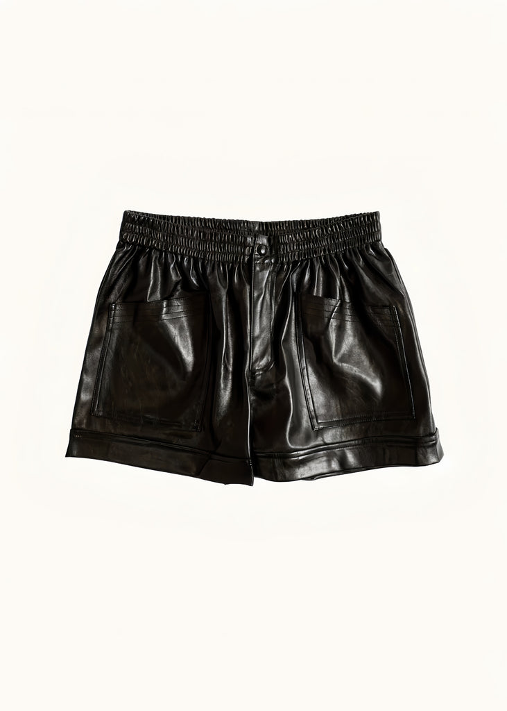 FAUX LEATHER POCKET SHORT | BLACK