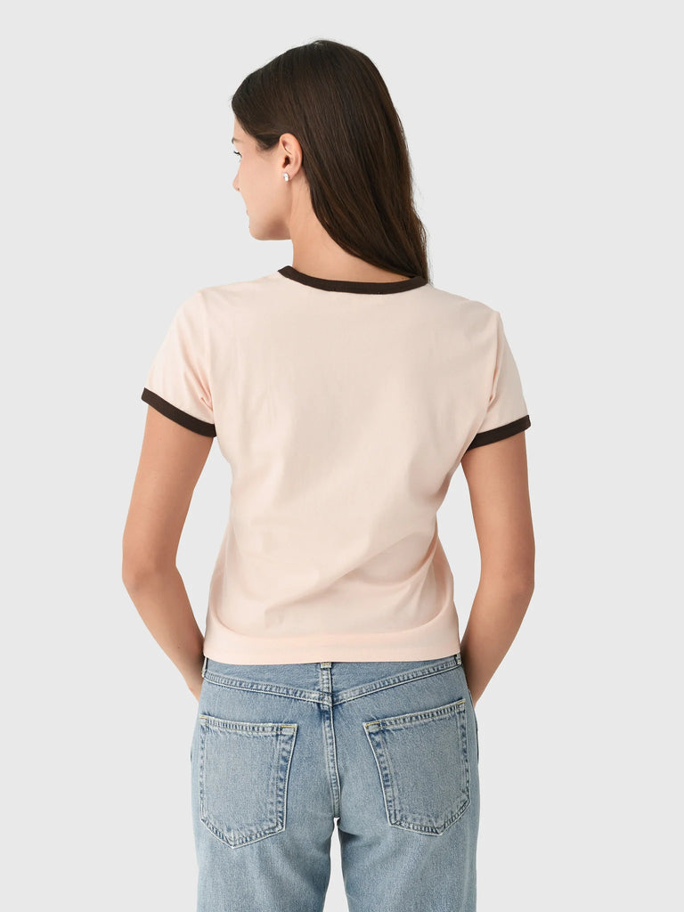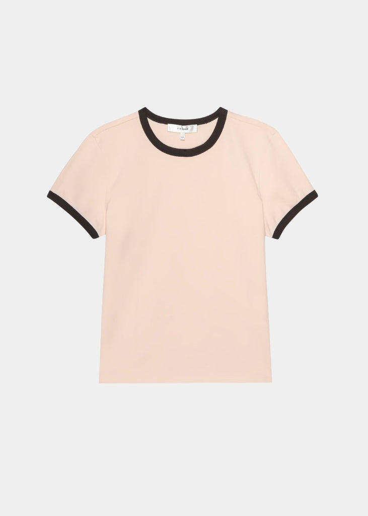 A charming cotton baby tee featuring contrasting trim at the crewneck and sleeves. This soft, comfortable top offers a classic, retro-inspired look.