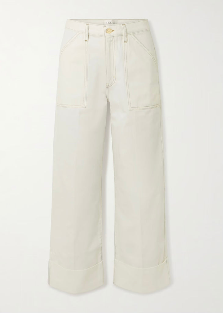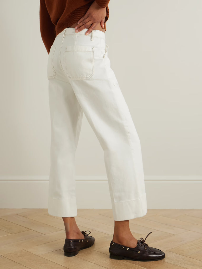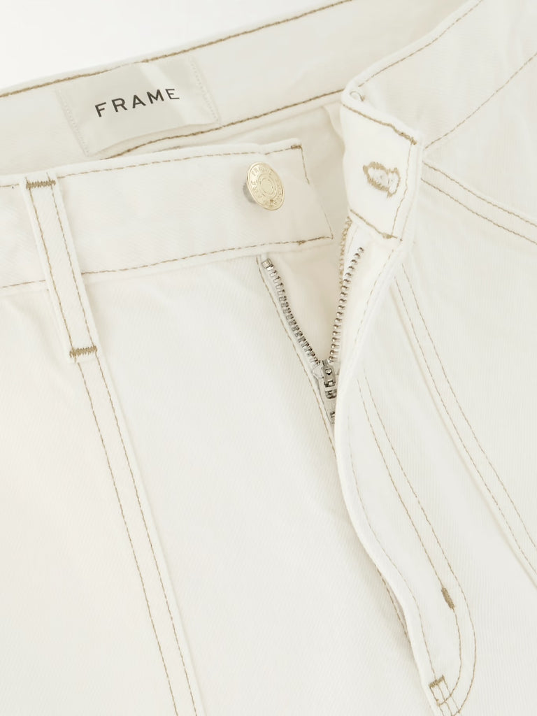 A clean take on utility. This high-rise jean features utility-inspired pockets, a relaxed straight leg, and an ankle-length hem with a wide tacked cuff. Done in rigid white denim, the pair is refined yet relaxed—just add a tank a sandal, or a crisp shirt.