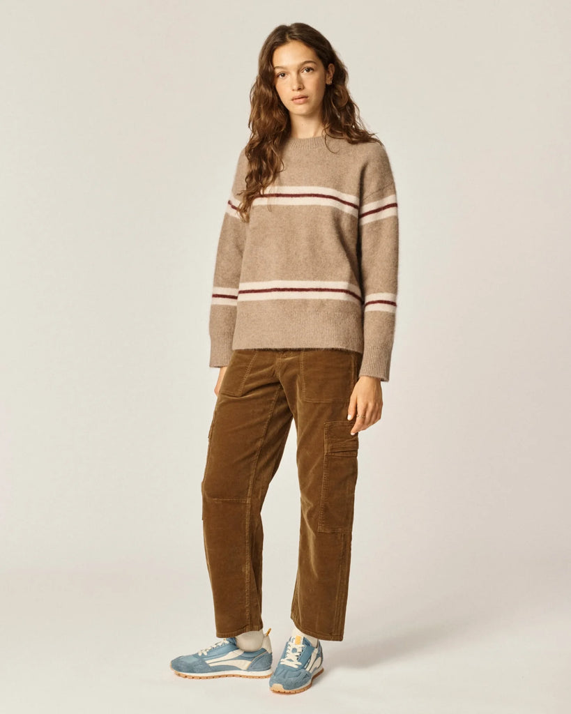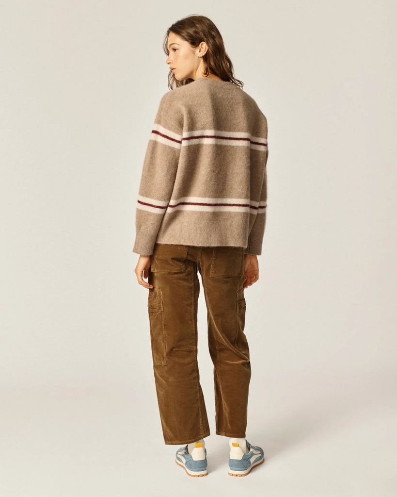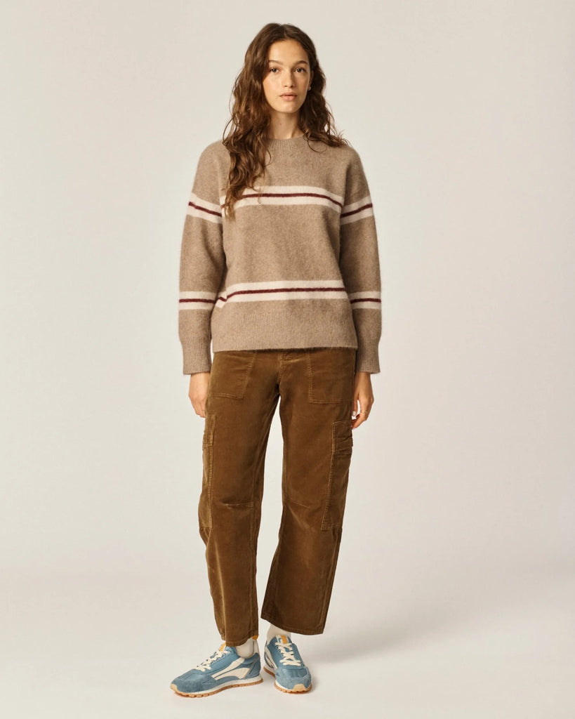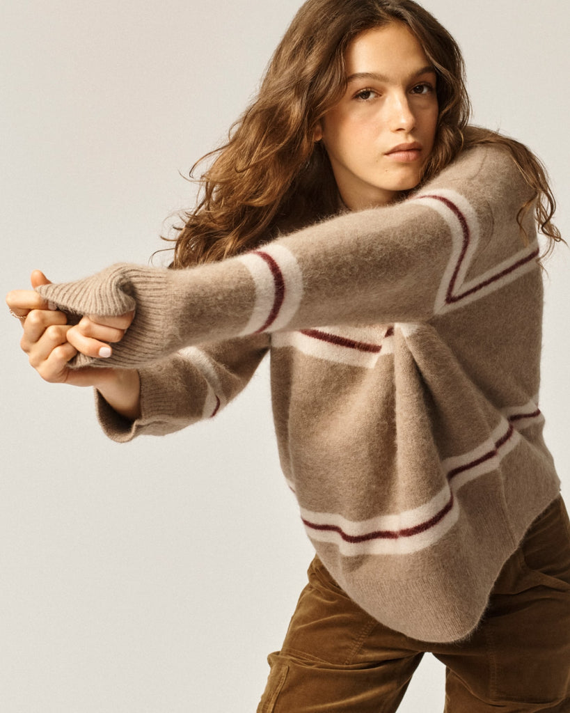 Cozy, relaxed and the softest sweater in your closet, the WILLOW is the perfect complement to your winter wardrobe. Offered in our two neutral tones with a pop of color in the multi stripe knit.