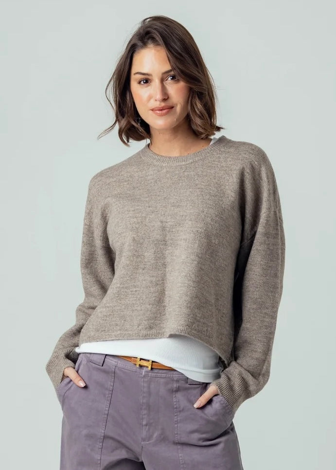 The ease of a sweatshirt, elevated as a sweater. Meet Magda, designed with a classic high crew neckline and relaxed drop shoulders, it’s intentionally boxy. The slightly cropped length sits just above the hips, making it perfect for pairing with high-rise bottoms. Ideal for layering into your fall wardrobe, though you can size down for a slimmer fit.