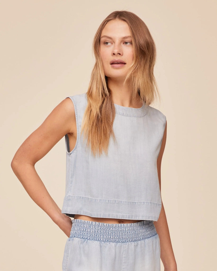 The Boxy Button Back Top is an elevated take on a classic sleeveless style.