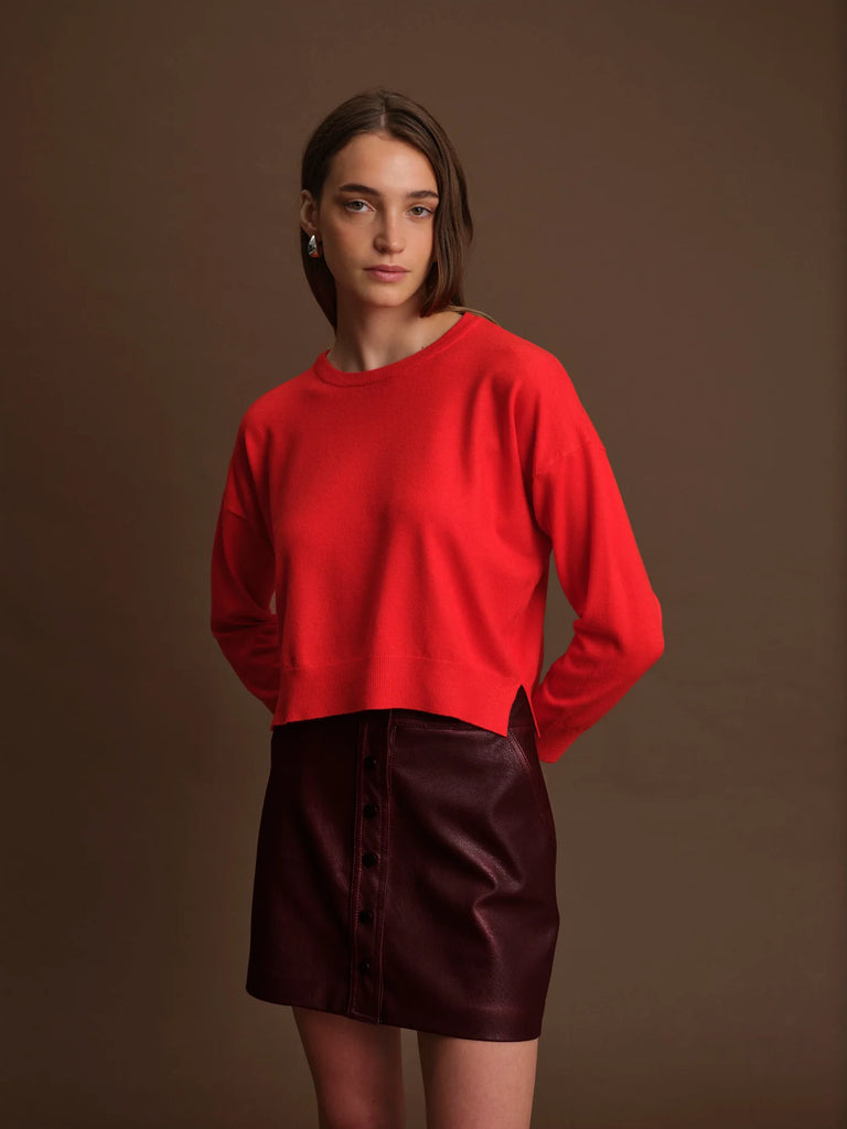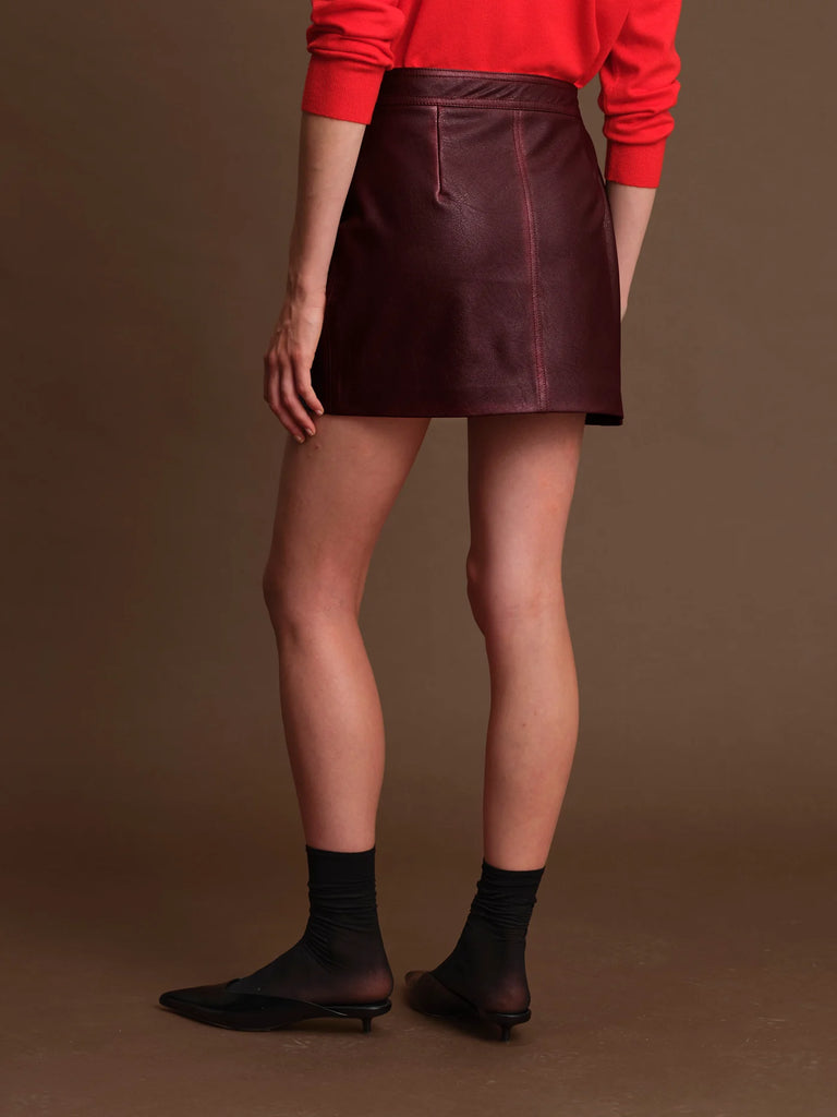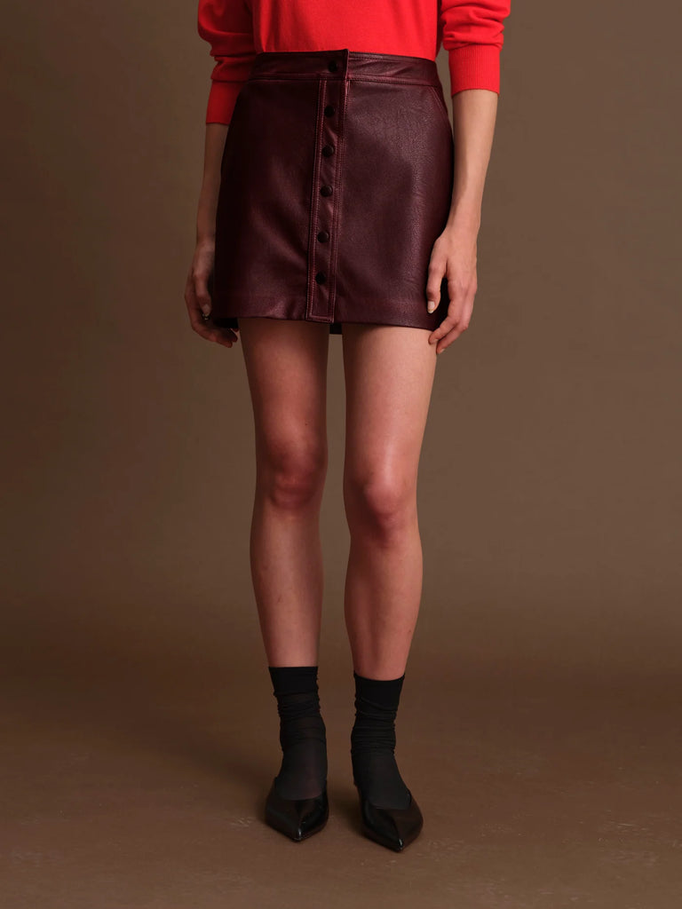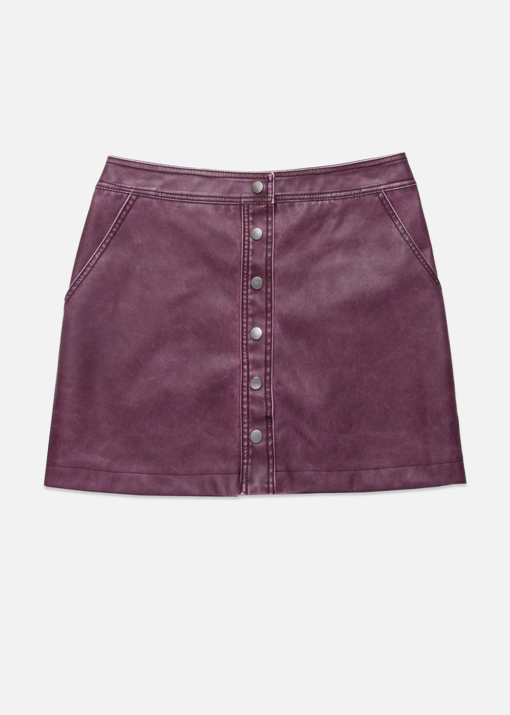 Add a little edge to your fall wardrobe with the Thomas Faux Leather Skirt in vibrant wine — bold in color and full of personality. This faux leather mini skirt features a playful snap-front design and handy front pockets, giving you both function and standout style. Perfect for pairing with knits, tights and boots this season. It’s an essential for Gamecock football, too!