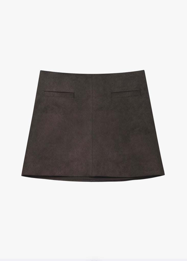 Meet the Mina Skirt. Designed with faux front pockets for a styled finish and an invisible side zipper. This subtly A-line silhouette mini skirt is slightly fitted through the hip and fully lined. Length measures 14.5", hitting right at the tip of most wearers' fingertips.