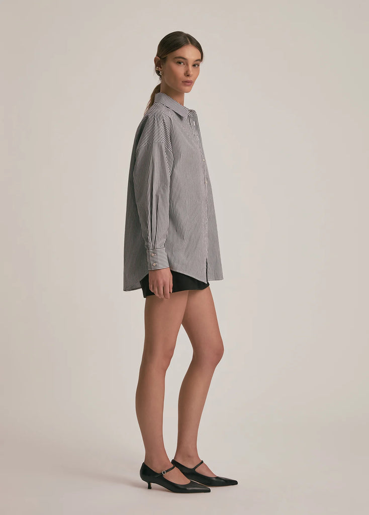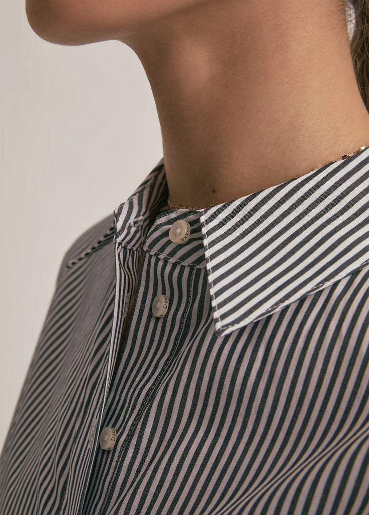 With a relaxed fit and pointed collar, the Ex-Boyfriend Shirt in Dark Charcoal Stripe is an oversized button up cut from soft cotton. Our favorite way to wear this shirt is, actually, any way – tied, tucked, half-tucked and unbuttoned.