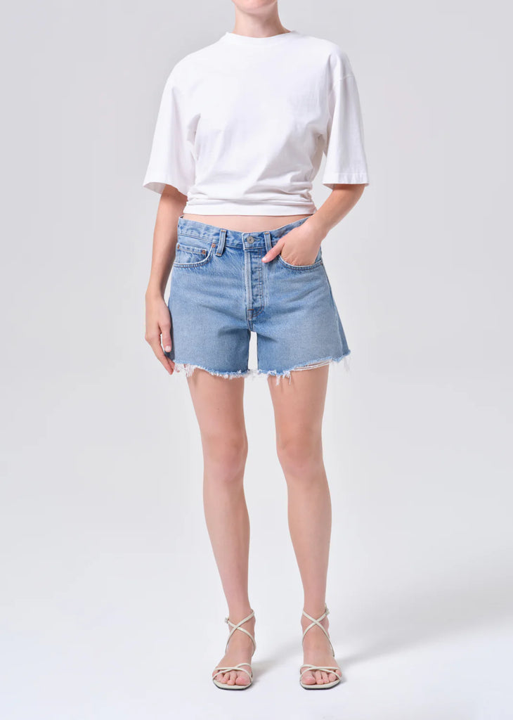 Looks Like: Light vintage indigo denim short