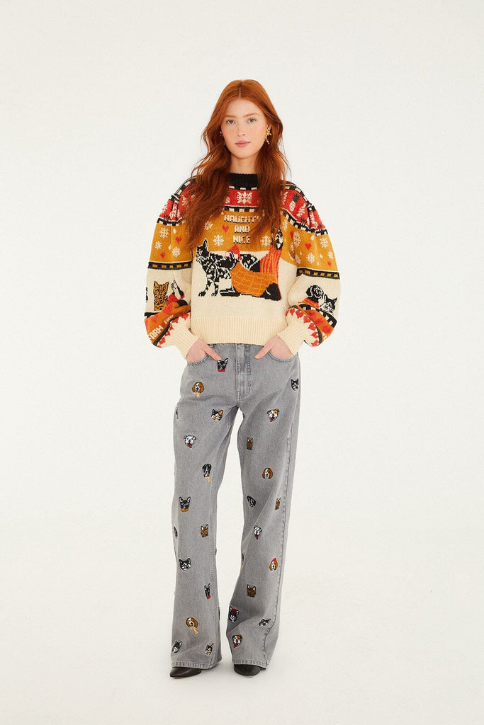 Step into vibrant whimsy with the Multicolor Cats & Dogs Embroidery Denim Pants from FARM Rio. Featuring a playful patchwork of embroidered cats and dogs in bright hues against classic denim, these pants bring joyful charm to your everyday look. The relaxed, straight-leg silhouette ensures comfort while celebrating unique artistry. Perfect for those who love to wear a story, these bottoms combine spirited patterns with effortless style in every stitch.