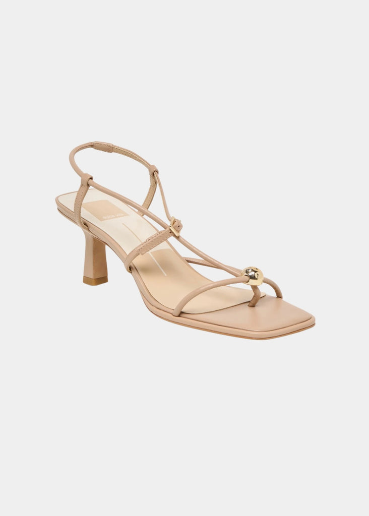 Understated, strappy, and goes with everything. Mylee’s architectural heel and minimalist hardware add a cool modern touch to dresses and matching sets.