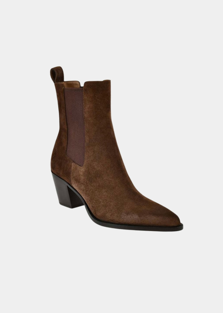 Keep Shadie H2O by the door because she’s a favorite-to-be. This classic, sleek style is complete with a block heel, pointed to, and side gores. The chocolate brown suede is waterproof and perfect for every cool weather outfit.