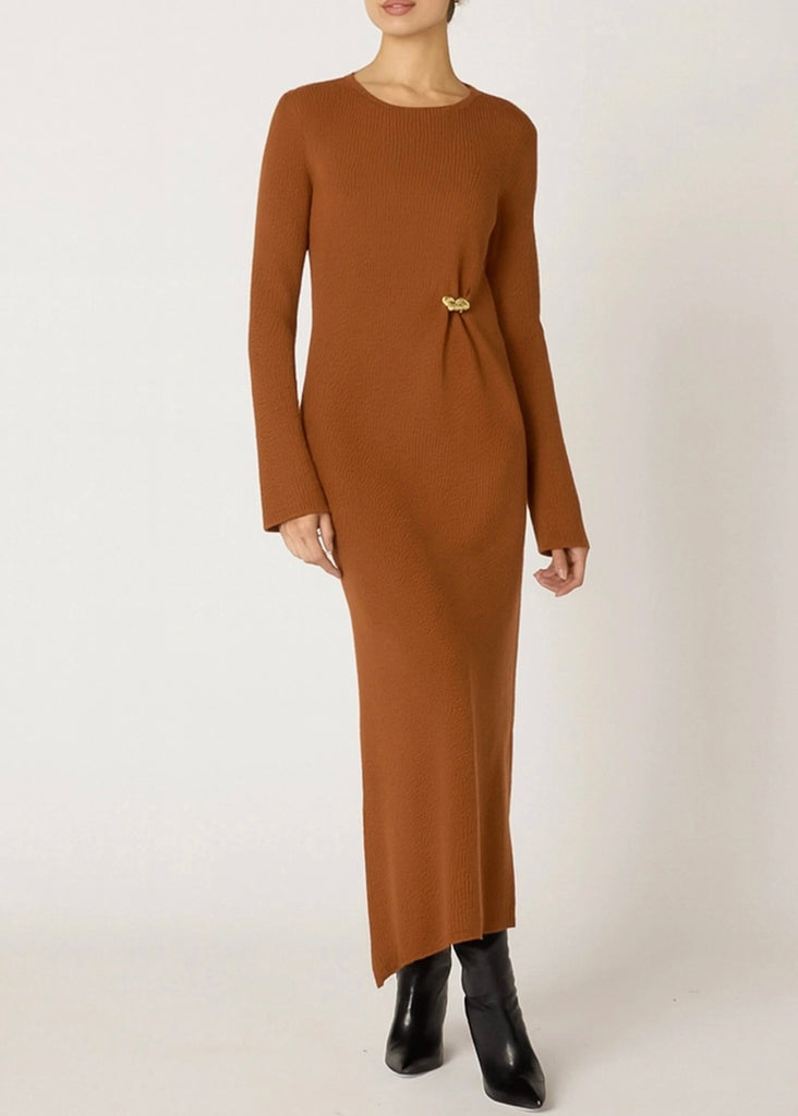 The Hjarta Midi Dress is a wardrobe staple. This long sleeve, slip-on midi silhouette features delicate heart button details and a statement imperfect heart charm detail that gathers the fabric in a flattering drape — each piece is unique, with slight variation in heart placement adding to its individual charm. Unique and one of a kind, it blends thoughtful craftsmanship with everyday ease — perfect for layering or wearing on its own.