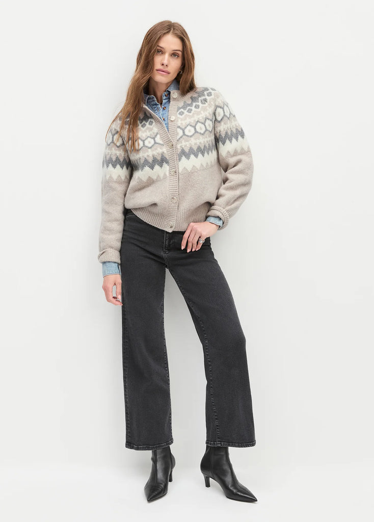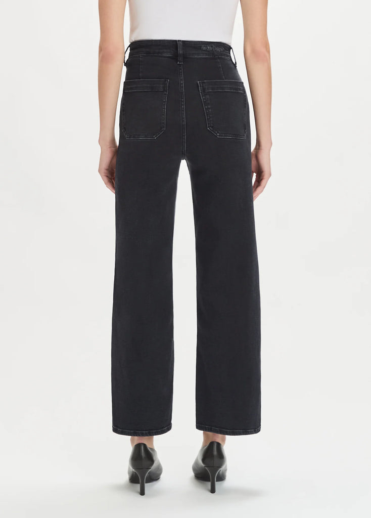 The wide leg, wide hem Mischa jean has a super high-rise that's slightly pinched at the waist and fitted through the hips. The charcoal-base black Tupelo wash is cut from super stretch denim that hugs all the right places.