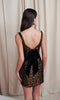 Statement maker: the Randi dress pairs well with fun plans! This mini style dress is made from leopard jacquard fabric, with a square neckline that gives a flattering fit to any body type and the velvet bow on the back adds adorable appeal.