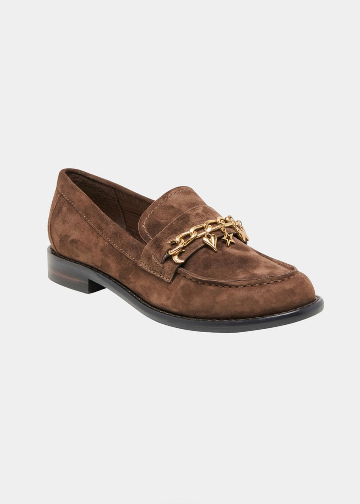 Waylen blends classic features with a little metal hardware. This suede loafer’s smart and polished silhouette is topped with on-trend gold metal charms. Style this classic loafer with straight-leg jeans or.