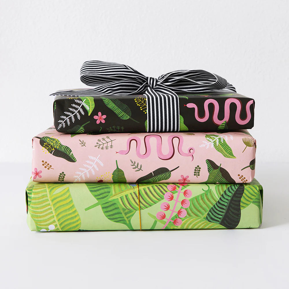 Fierce creatures and bold flora make this an any-occasion gift wrap.