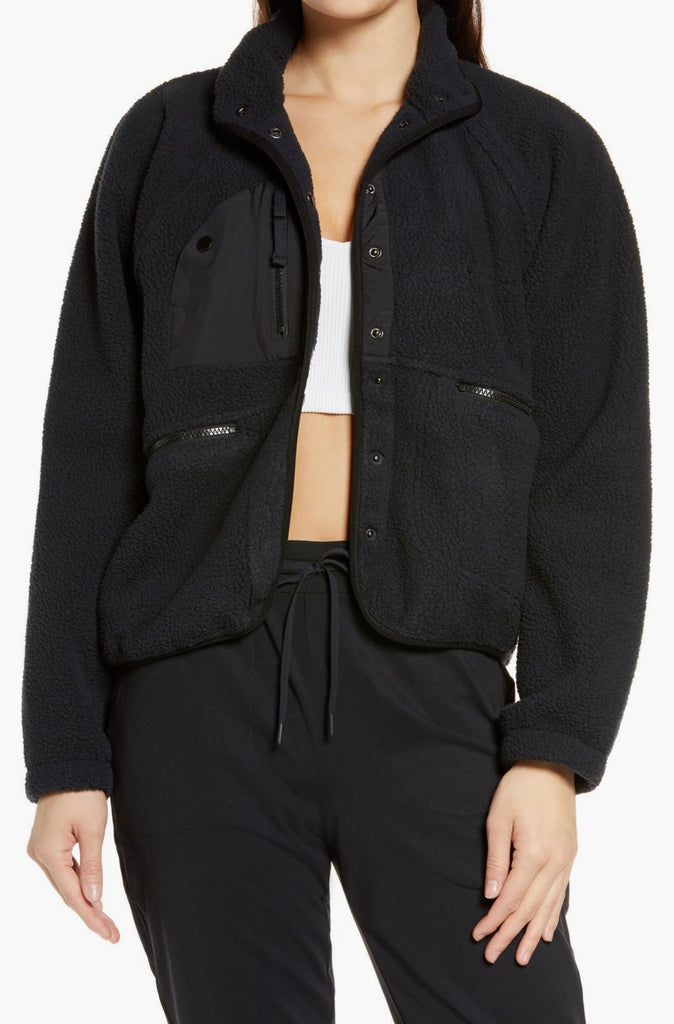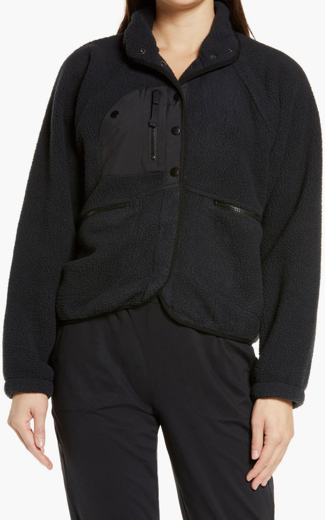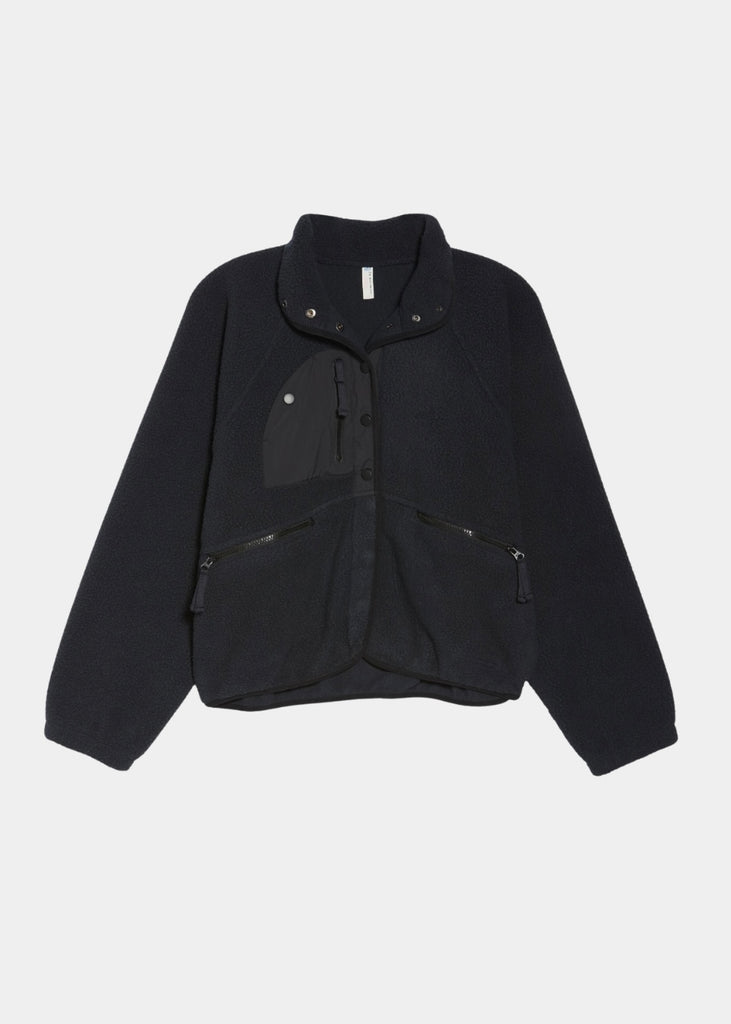 Perfect to layer over activewear or streetwear, this fleece jacket features a button-up front with cool zippered pocket details.
