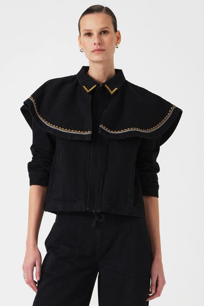 Our hero jacket - statement denim piece with a removable cape for endless styling