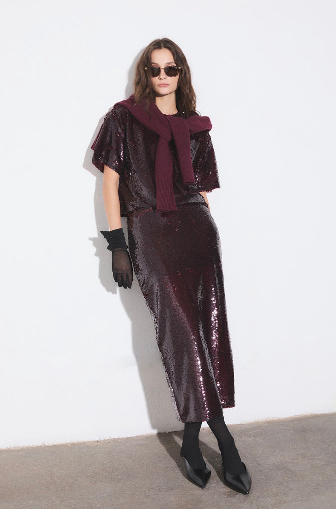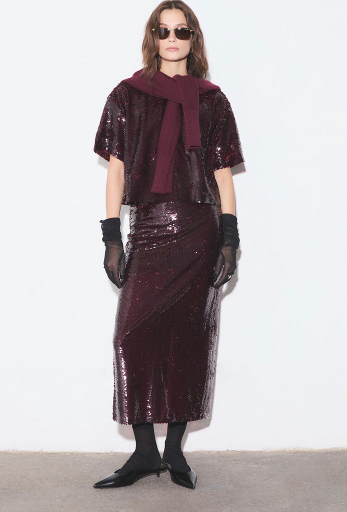 DELUC- LOGAN SEQUIN SKIRT | BORDEAUX