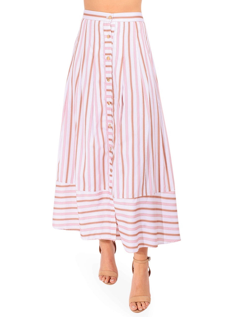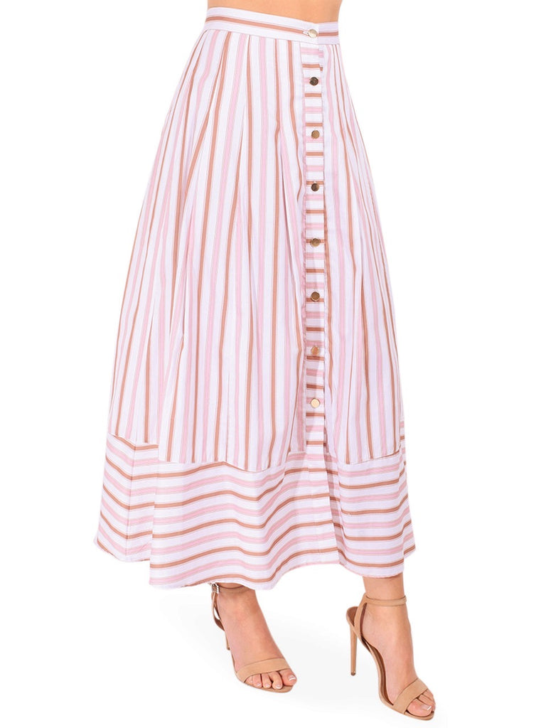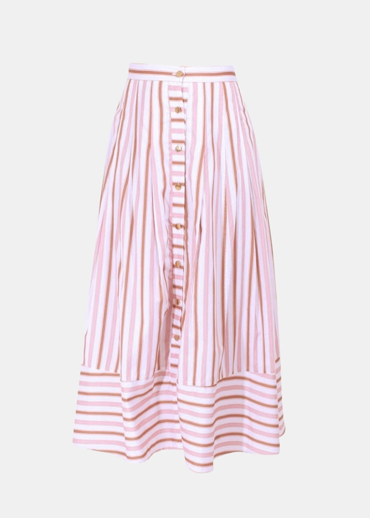 Bright and breezy, the Spencer Striped Midi Skirt brings playful polish to everyday outfitting. Crafted from crisp cotton, this skirt features a bold multi-stripe pattern in sun-washed hues and a flattering midi length that moves with ease. Pair it with a simple tank or tucked-in blouse for a fresh, put-together look. Perfect for warm-weather outings, vacations, or casual events