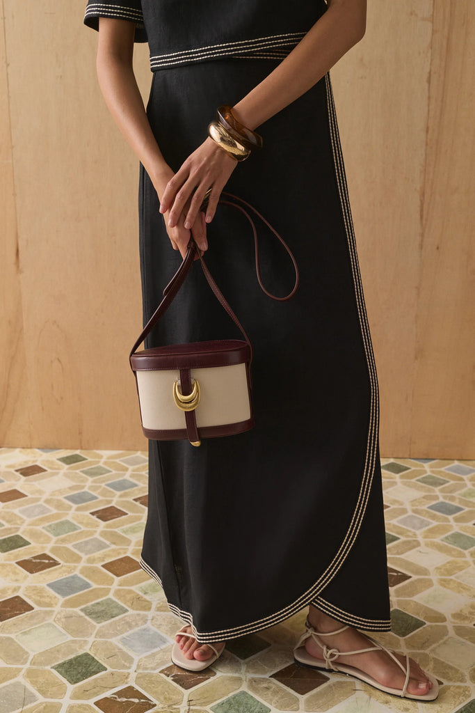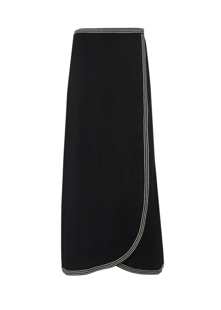 Made to show a little leg, the fun and flirty Carrie skirt is a wraparound design with a petal hem. The playful embroidery stitching around the border of the skirt makes this piece extra special. The fixed waistband ensures a figure-hugging fit. Pair with the Zosia Top or Tash Knit Tank.