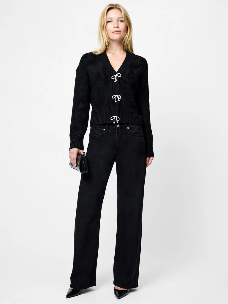 Sweet, soft, and just the right amount of statement. This cardigan adds a playful twist to your knitwear rotation, designed with a relaxed fit and charming pearl-adorned bows down the front. Whether layered over a slip dress or styled with denim, it’s an easy way to bring a little romance into everyday dressing.