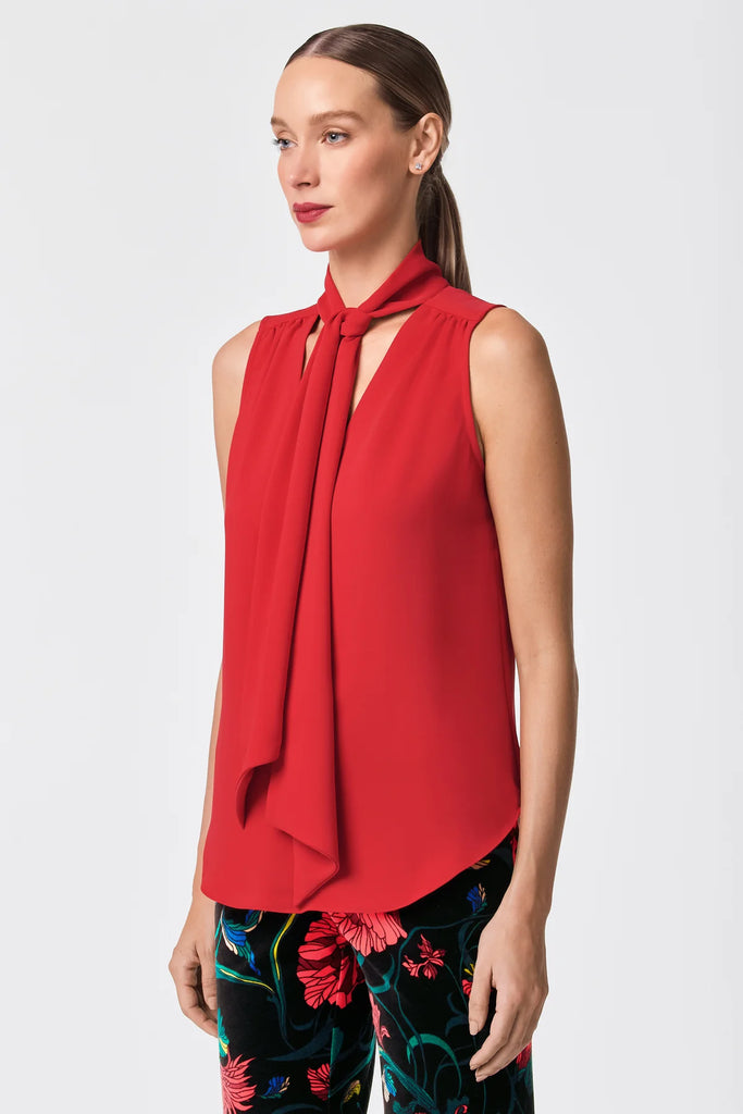 We love a little drama, especially when it comes to style. This red, sleeveless top features a V-neck with a tie for a playful vibe. Lightweight georgette elevates this top with an airy and luxe feel.