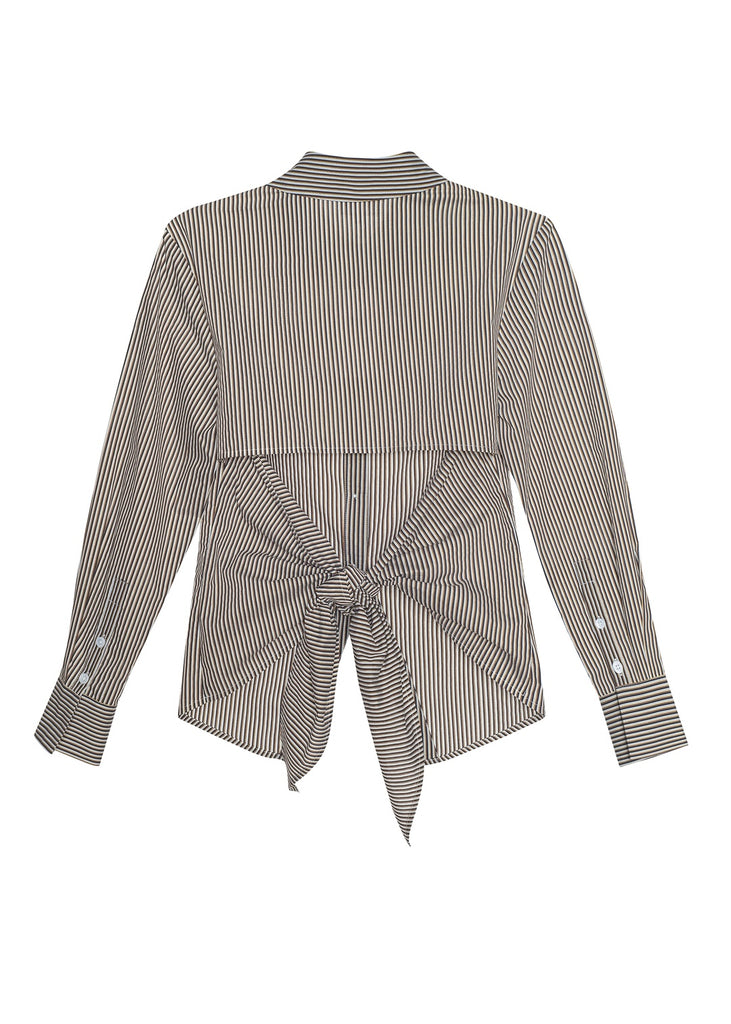Made in the seasons' standout lurex stripe accented with subtle gold lurex detail, the Aster is an update on the classic button down - featuring an open back with an adjustable tie detail. It's a modern, versatile silhouette that styles effortlessly from day to night. Shown styled with the Striped Celeste Skirt or pair with your favorite vintage denim.