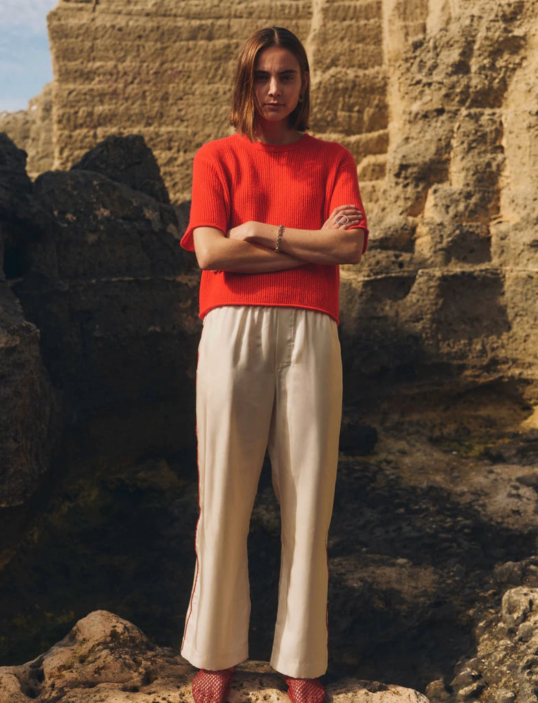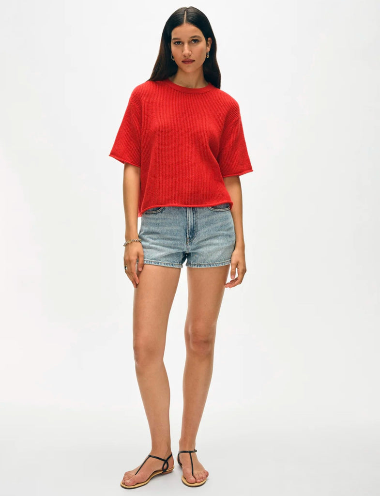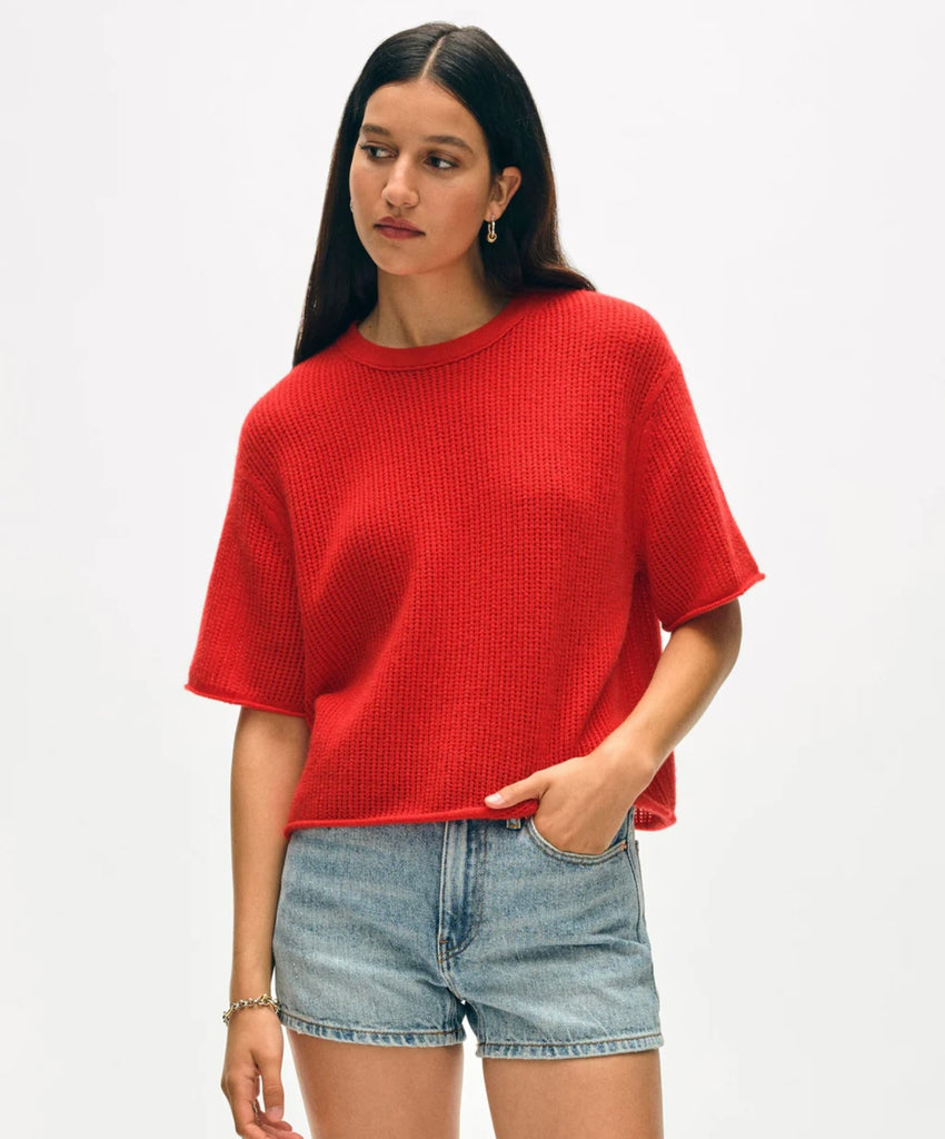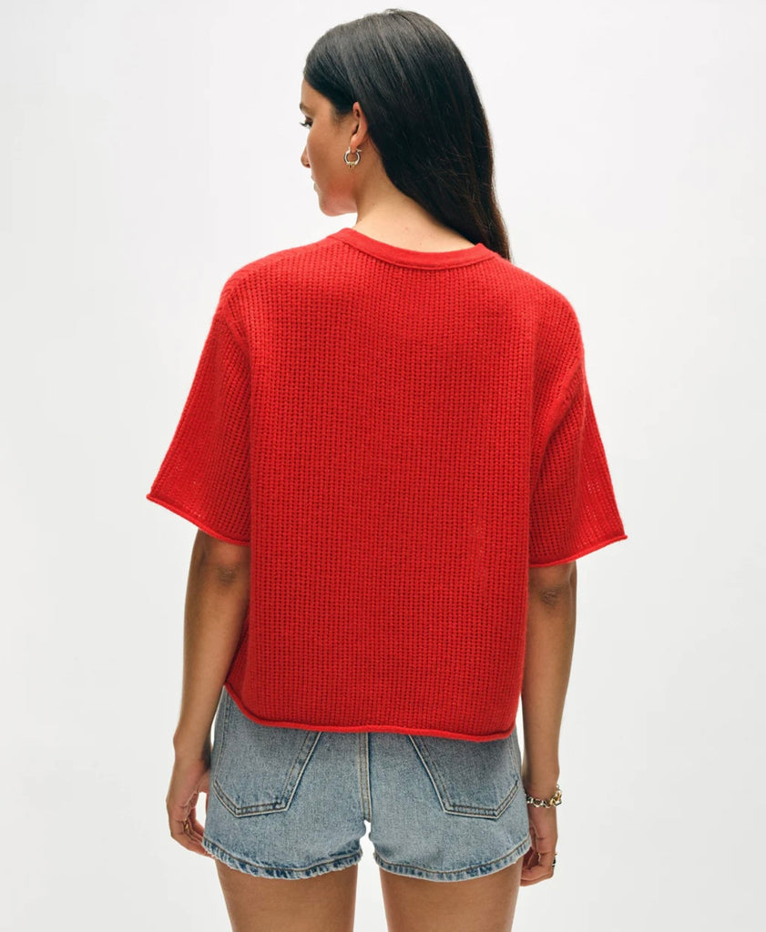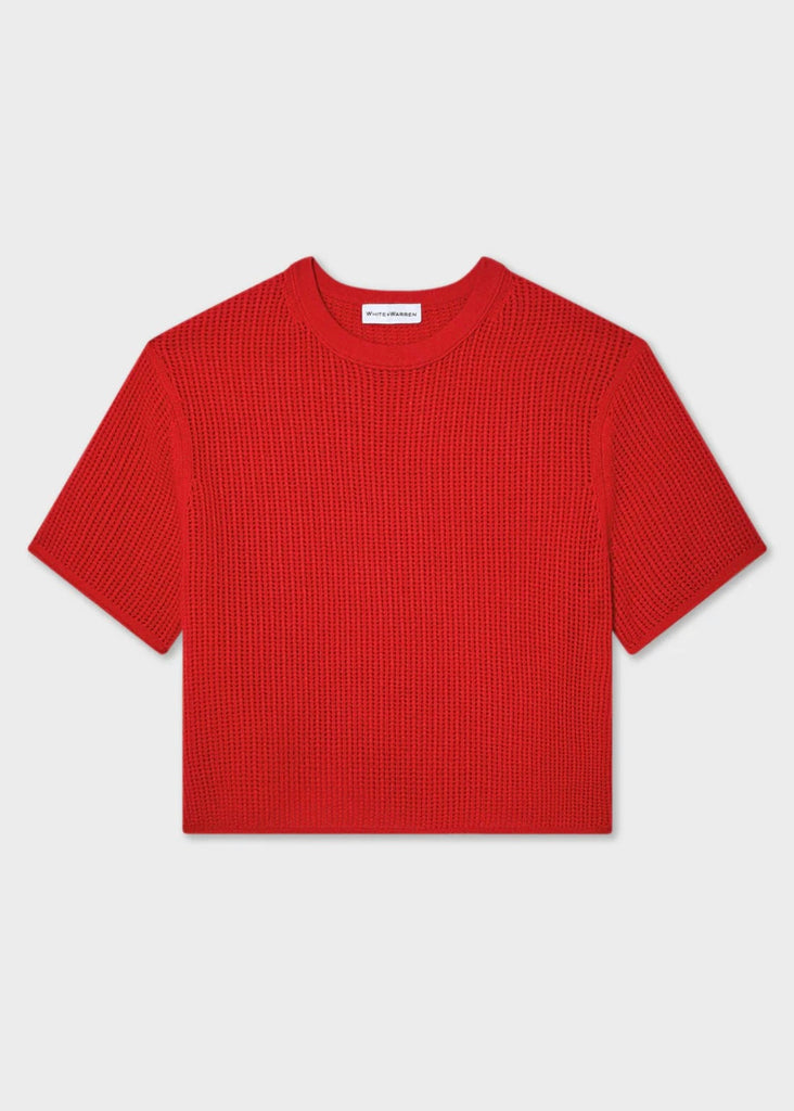 CASHMERE WAFFLE MESH TEE | FRENCH RED