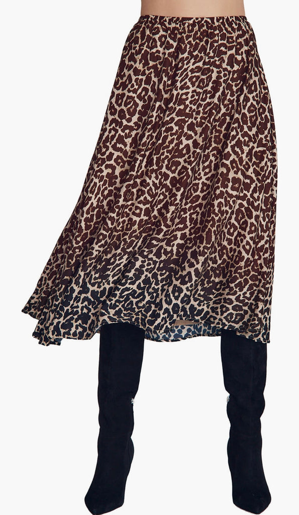 Elegant and effortless, the Gathered Skirt in Ombre Leopard Print is a versatile piece that moves gracefully with every step. We love it paired with a black or brown sweater for a chic fall look.