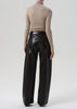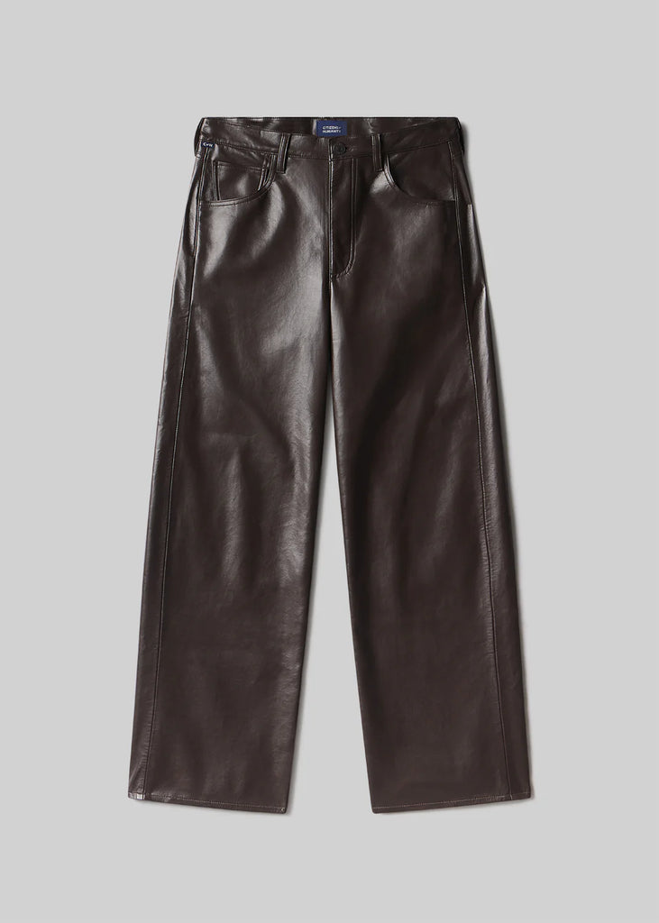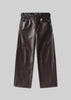 The ‘Ayla’ offers a refined take on the baggy silhouette with a relaxed fit that sits away from the body while maintaining a clean, intentional shape. This version is crafted from buttery recycled leather in a rich chocolate brown, finished with slight stretch for added ease. Style back to tonal leather shirting for a directional, head-to-toe look.