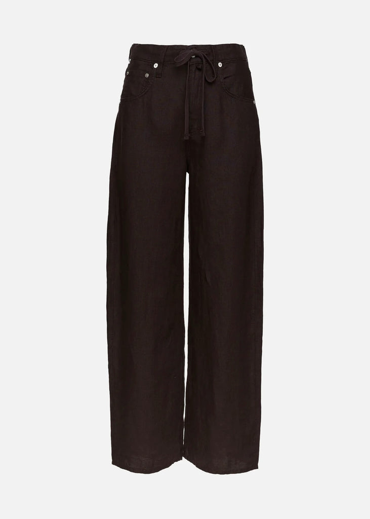 Looks Like: Deep dark brown linen trouser with drawstring detail