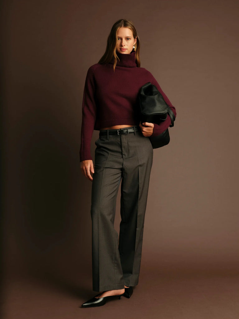 Keep your style cozy yet chic in this cropped sweater complete with a ribbed turtleneck.