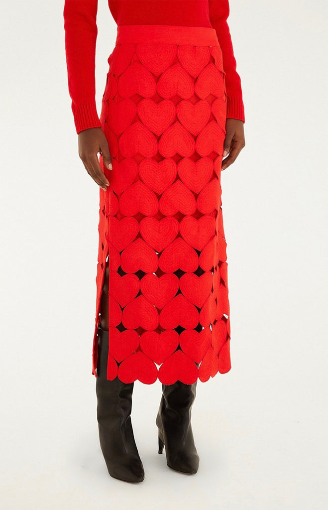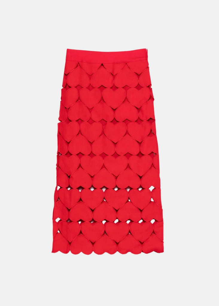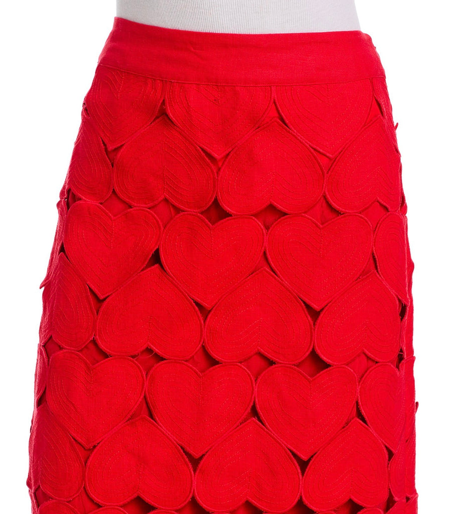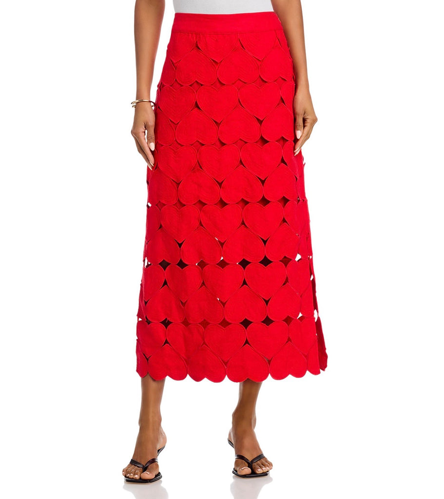 Vibrant cutout hearts romance this figure-skimming midi skirt cut from lightweight linen.