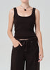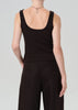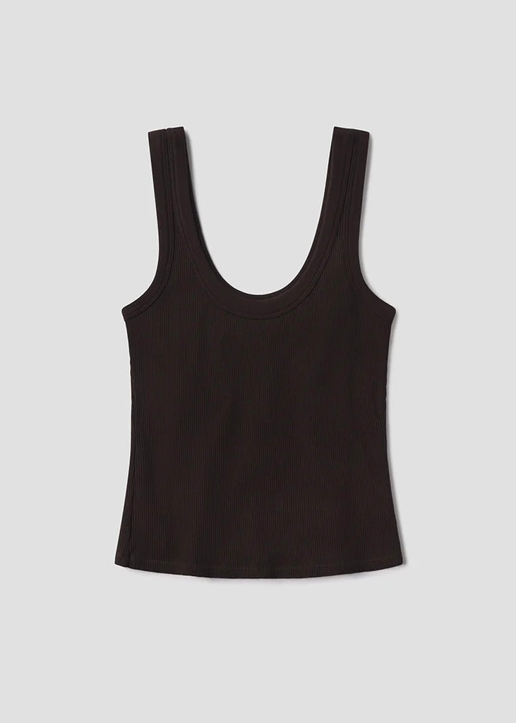 The Faye is a refined essential cut from ultra-soft ribbed knit with supportive stretch. Designed for a close, flattering fit, it features a clean scoop neckline and minimal finish. Effortless on its own or layered, it’s an everyday staple with understated polish. This updated version of our best-selling tank is now 2" longer for added coverage and ease. Pair with the coordinating Brynn Linen Trouser for a chic, tonal look.