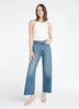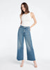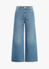 A super high-rise, wide-leg jean that's pinched at the waist and easy at the hips. Features a cut wide hem, front slant pockets, back patch pockets and darts for a flattering fit.