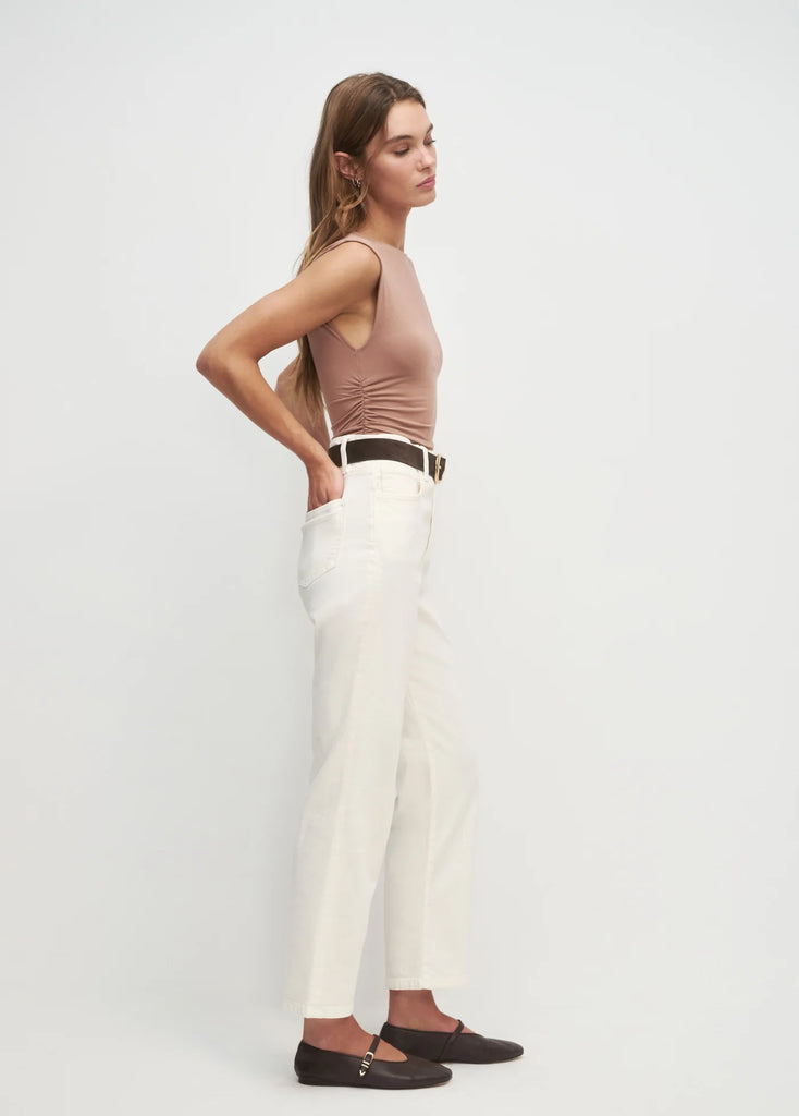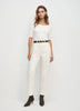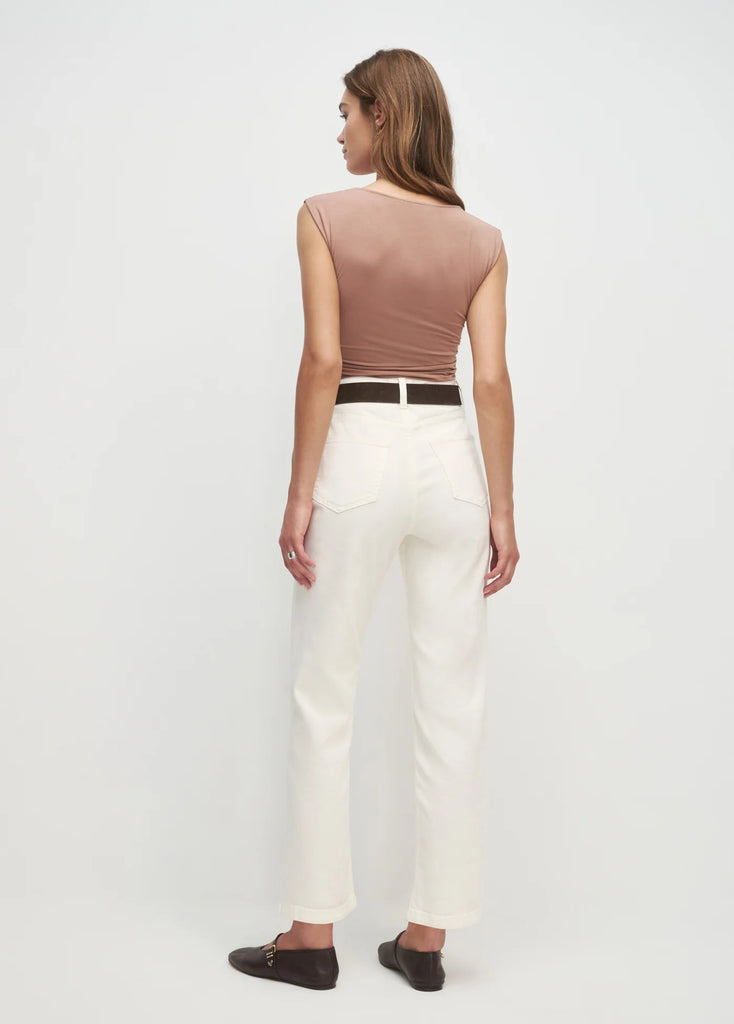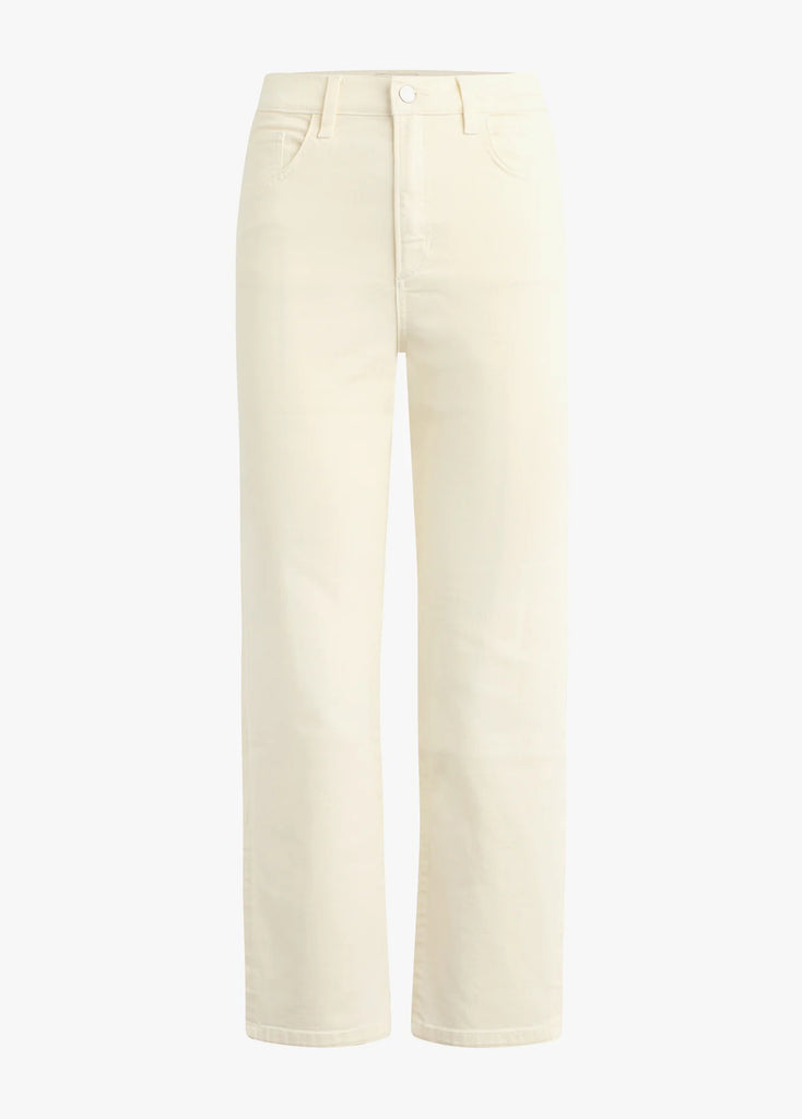 This Valentina silhouette in Gardenia is a true straight leg ankle made from comfort stretch denim in an ivory overdye. Meant for everyday wear, this style is fitted at the hips and straight down from thigh to the hem. (Favorite Daughter embroidery on the back waistband, of course.)