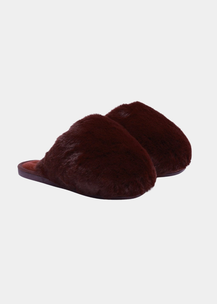 Features: Slip-on style, backless design, oversized faux fur uppers, flat rubber outsole