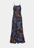 Elegant and effortlessly breezy, the Black Snakes Bouquet Slip Maxi Dress features a refined square neckline and delicate spaghetti straps that frame the shoulders with grace. Its flowing silhouette skims the body, adorned with a captivating floral and subtle snake motif in deep blues and warm earth tones, inviting a soft yet striking presence wherever your day leads.