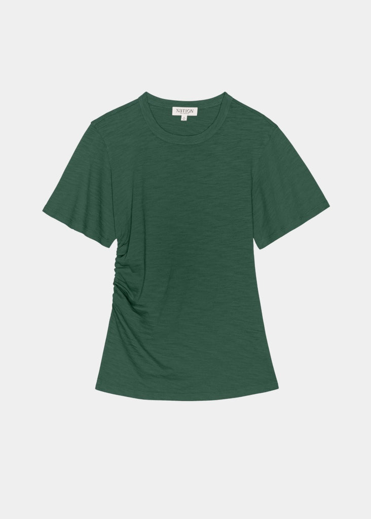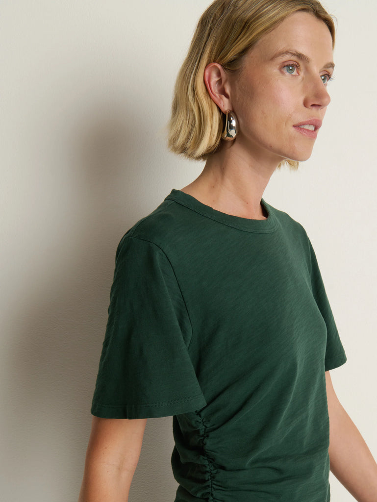 Not your basic tee. The Vella Tee is a feminine essential with a refined touch—crafted from cotton jersey in a fitted silhouette. Flutter short sleeves and side slit details bring graceful movement to the everyday. (This one comes in Pine.)