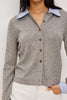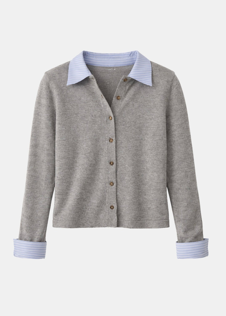 Versatile by design, the Eryn is a cotton-blend cardigan featuring a removable striped collar and cuffs, front buttons, a relaxed fit, and long sleeves.