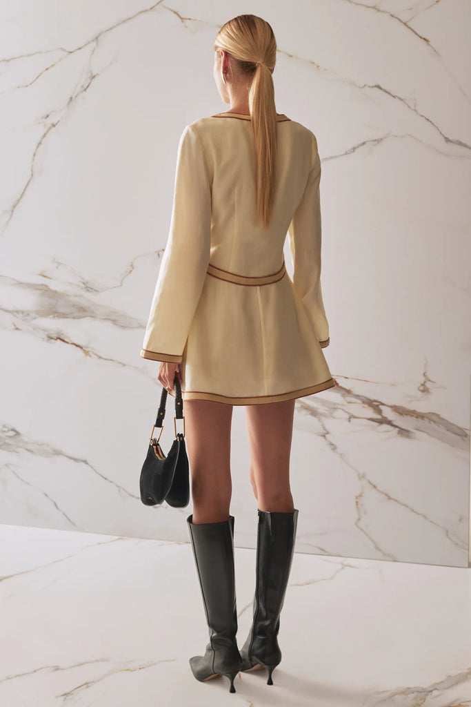 The Luella Dress is a flattering mini like no other. Designed to contour the body with its curved binding lines, this dress gorgeously drapes into an A-line silhouette.