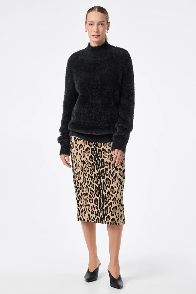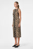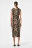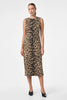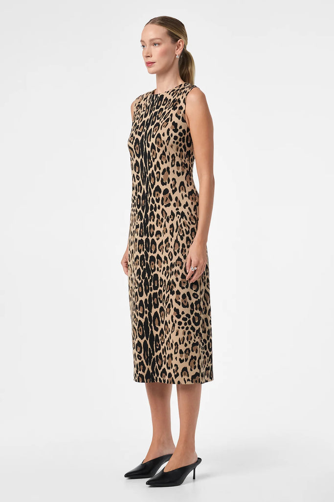 A sophisticated take on animal print, this sleeveless midi dress has a form-fitting silhouette that will turn heads. This dress is made of viscose knit jaguar jacquard, and it features a crewneck and center back exposed zip. Wear it to your next cocktail party by itself or layer a sweater over it for a more casual, cozy look.