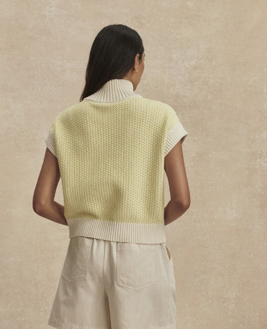 Two-tone cotton-blend yarns bring the textured stitches of this sporty sweater to life and add rich depth and dimension to any casual look you build around it. Pair it with the Wide Leg Pant in Pristine, any wash denim/shorts -- or for a fun color combo, pair with the Atrium Short in Porcelain Blue.