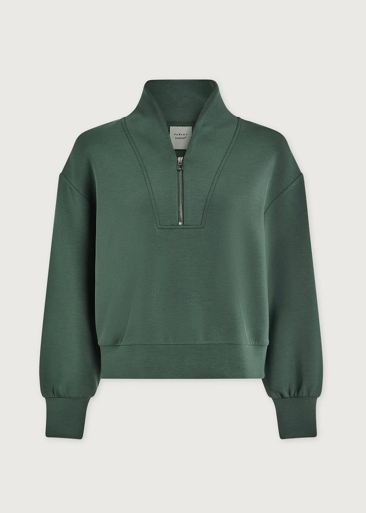 Cut to an oversized fit, this versatile sweatshirt features a paneled, half-zip neck and deep cuffs with hem band. Made in Varley's signature DoubleSoft® fabric, it's designed to be worn on-the-go. Pair with the coordinating Extra Wide Leg Pant in Dark Forest for a matching set.