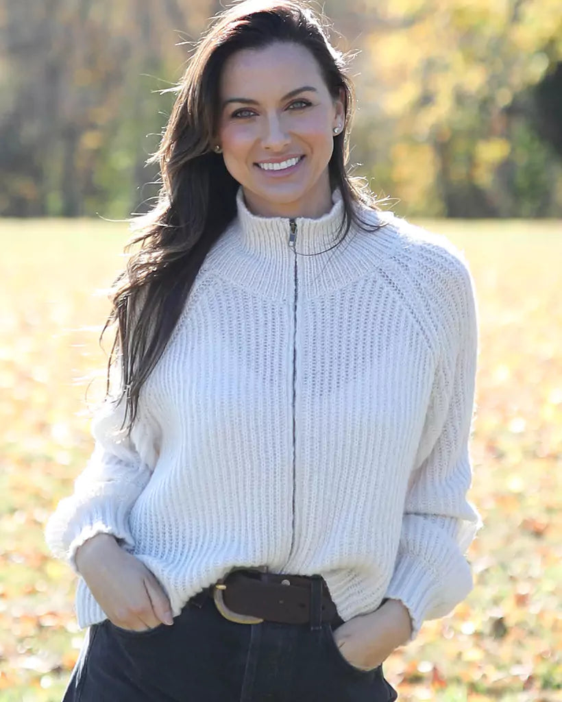 Crafted from a soft wool-blend, this zip-up cardigan combines comfort with effortless style. Designed with raglan sleeves for a relaxed fit, ribbed cuffs and hem for added coziness, and subtle side slits for a modern edge. Perfect for layering, it’s a versatile piece that brings both warmth and a laid-back look to your wardrobe.